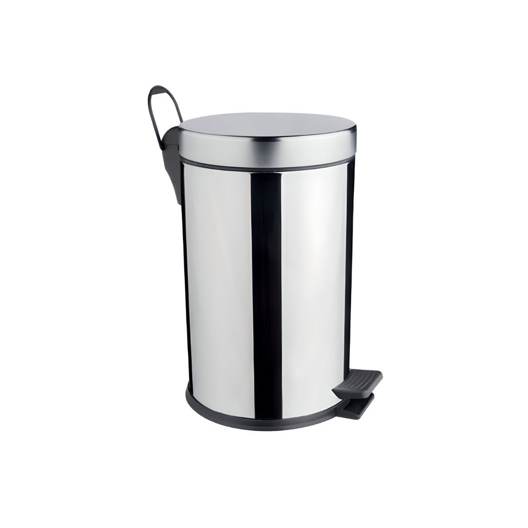 Pedallı Metal Çöp Kovası 12 L, banyo ve küçük mutfaklar için ideal ölçüdedir.